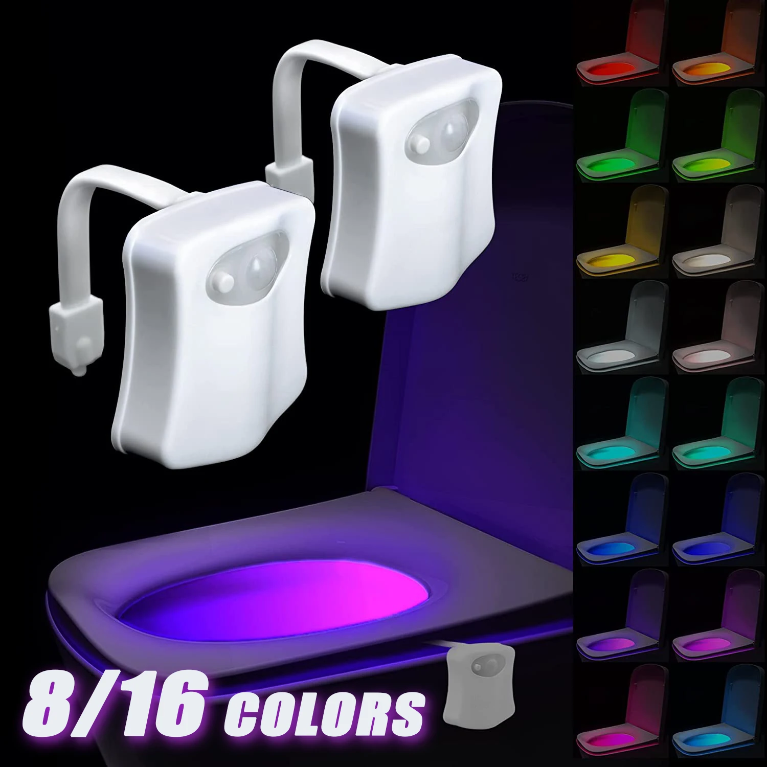 8/16 Color LED Smart Sensor Light Toilet Lid Night Light Motion Sensor
