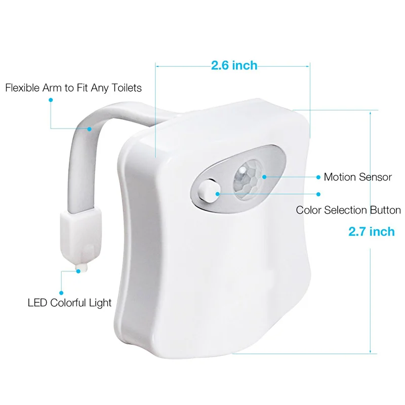 【Body Motion detection Sensor & Light Sensitive】 With built in motion sensor, the toilet bowl light will light up in the dark to show you the way when it detects movement and stay on for 2 minutes after last movement.The bowl light will turn off automatically when it detects light to save energy. No more blinding at midnight and a perfect accessory to decorate your bathroom.